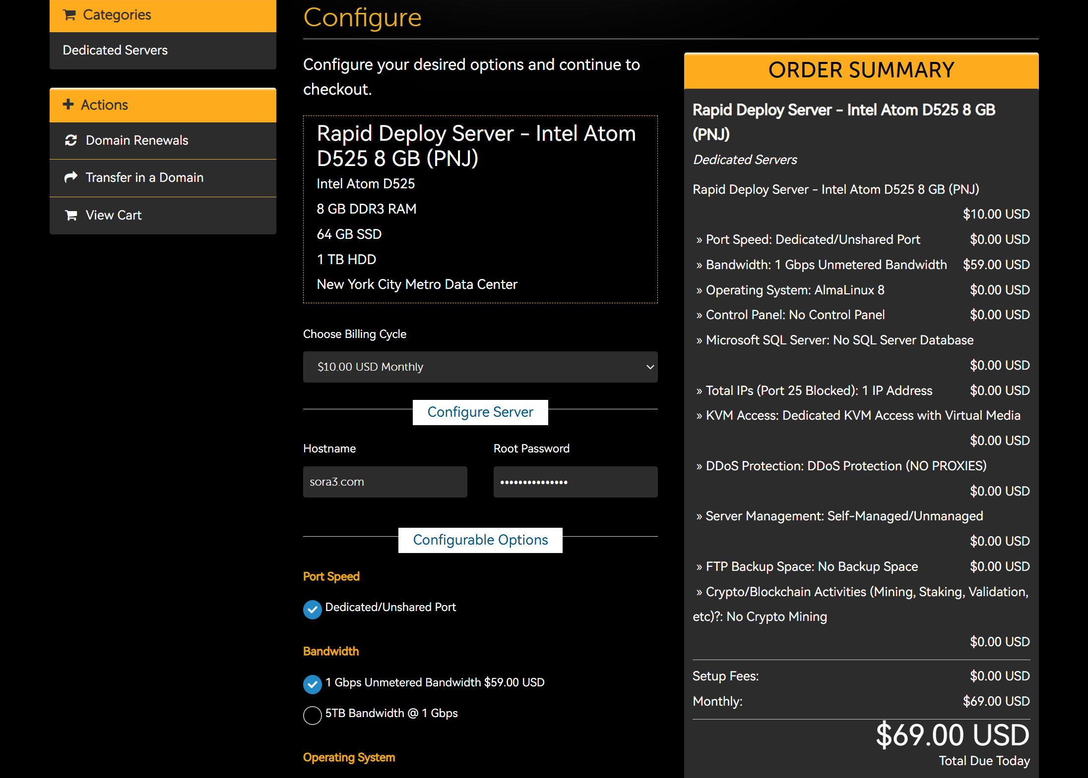 1 Gbps Unmetered Bandwidth $59.00 USD