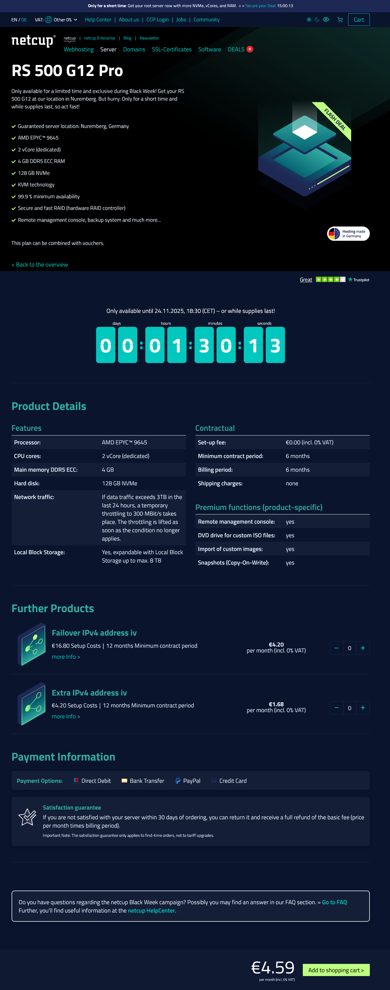 Important: Be aware of netcup's contracts. This server renews on a 6 month contract basis.