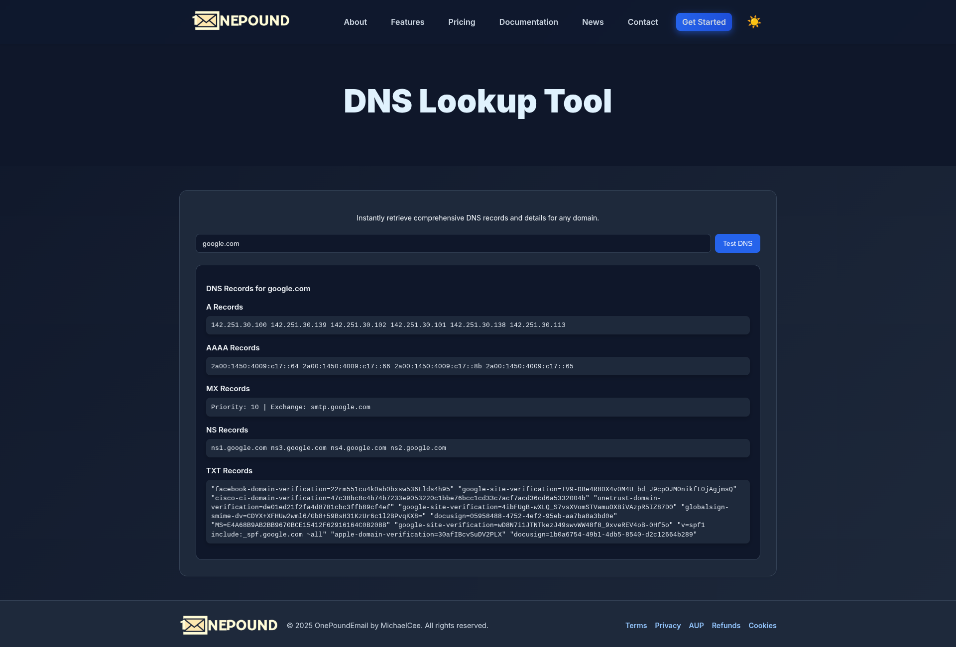 Also to follow on my last message.. I've made a OnePoundEmail branded version of the DNSTe.st lookup tool.