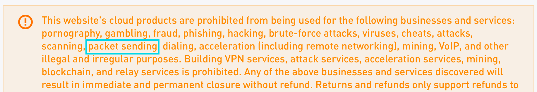 VPS that does not allow sending packets as per ToS...